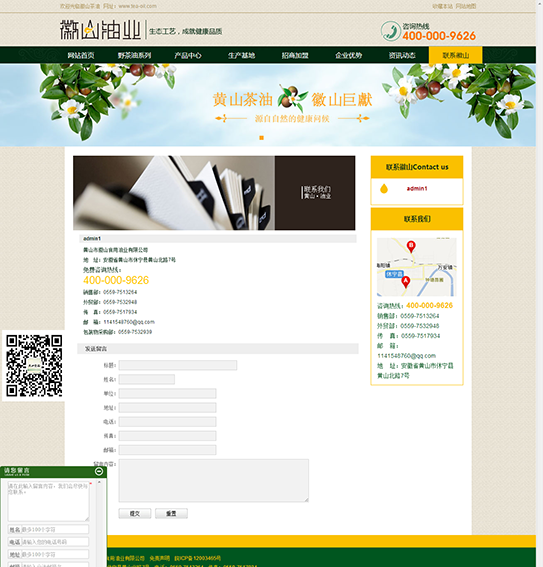 黃山市徽山食用油業(yè)有限公司是一家專(zhuān)業(yè)以油茶系列產(chǎn)品開(kāi)發(fā)為主,集科研、生產(chǎn)加工、貿易為一體的國家經(jīng)濟林產(chǎn)業(yè)化龍頭企業(yè)和安徽省林業(yè)產(chǎn)業(yè)化龍頭企業(yè)。