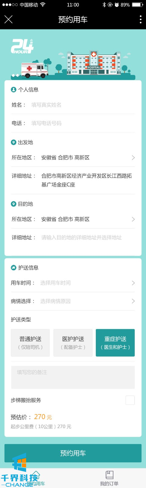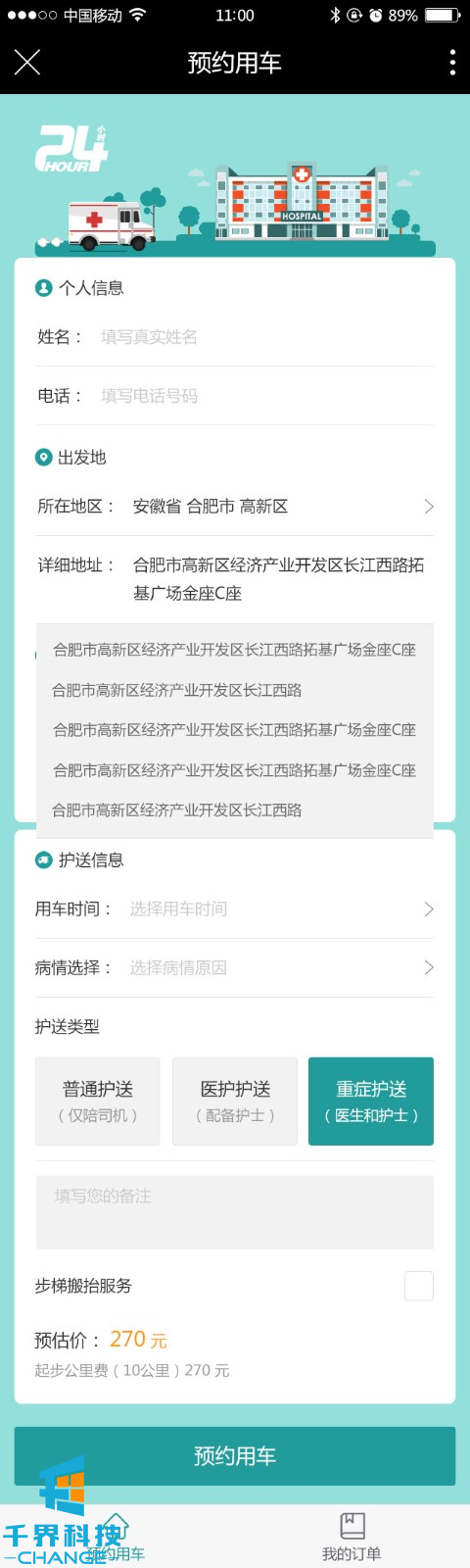 該項目是一個(gè)救護車(chē)預約用戶(hù)的公眾號。