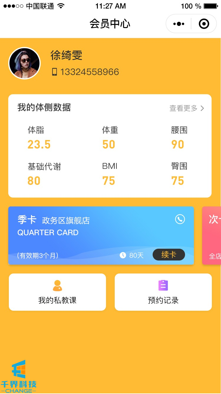 該項目是一個(gè)連鎖健身館的會(huì )員系統小程序。里面包含會(huì )員注冊、多門(mén)店管理、會(huì )員管理、私教預約、教練端、課程購買(mǎi)、二維碼開(kāi)門(mén)等功能。