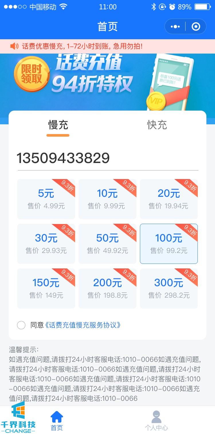 話(huà)費充值分銷(xiāo)小程序