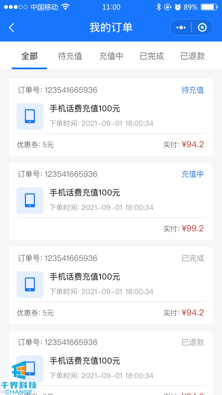 項目名稱(chēng):話(huà)費充值分銷(xiāo)小程序 項目類(lèi)型:小程序