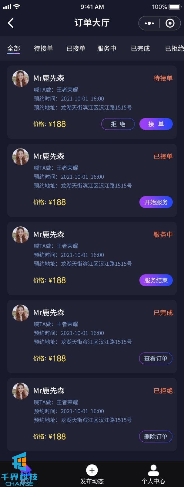 該項目用戶(hù)可以在小程序上置頂一個(gè)陪玩師下單,陪玩師端接單后雙方確認訂單,然后線(xiàn)下服務(wù)的小程序,陪玩師可以發(fā)布動(dòng)態(tài),用戶(hù)可以看到每個(gè)陪玩師發(fā)布的動(dòng)態(tài)。