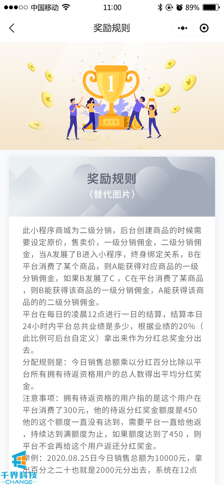 商城有2種分銷(xiāo),一種為購買(mǎi)商品的常規分銷(xiāo),一種為購買(mǎi)的會(huì )員的多層級分銷(xiāo),有級差、層級獎勵等功能