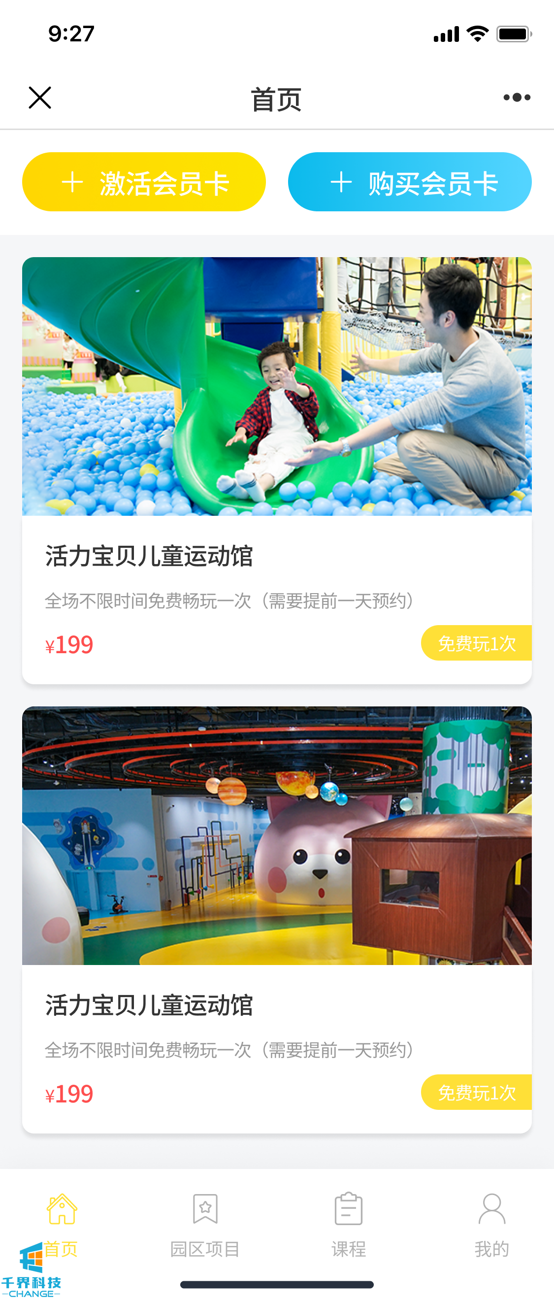 該項目是用于親子游樂(lè )園區,主要功能包含購買(mǎi)會(huì )員卡、激活會(huì )員卡、預約游樂(lè )項目、報名活動(dòng)、購買(mǎi)課程等功能,集兒童游樂(lè )和教育于一體。