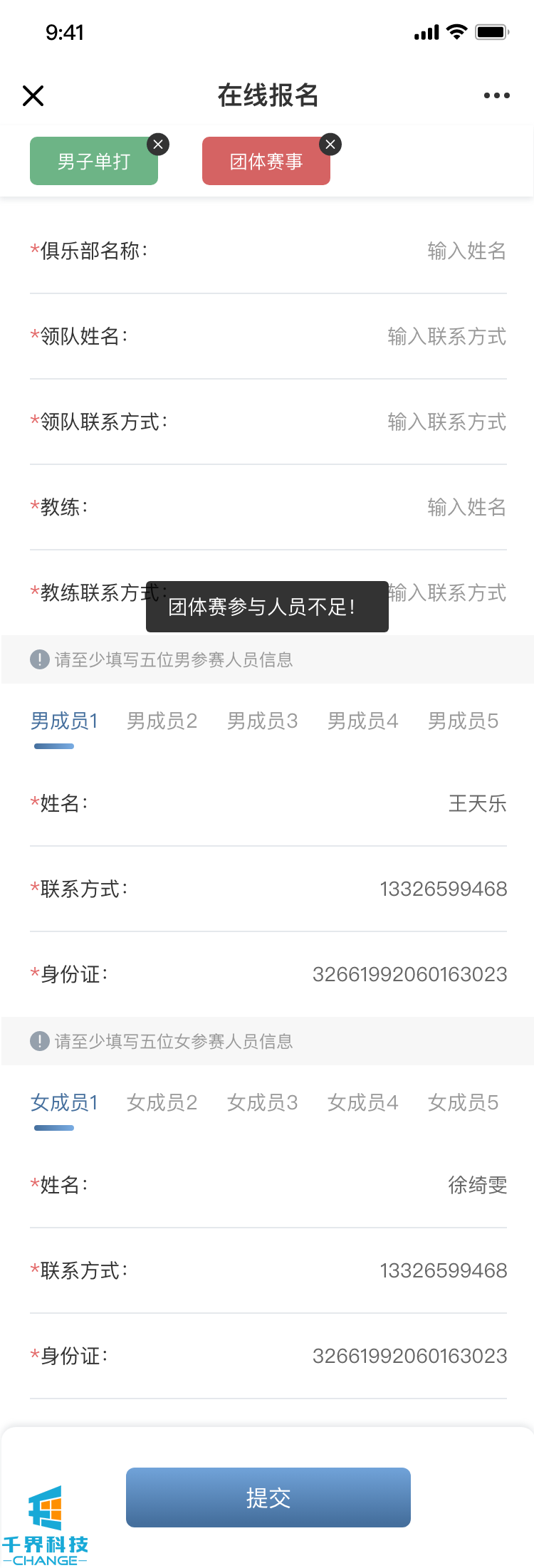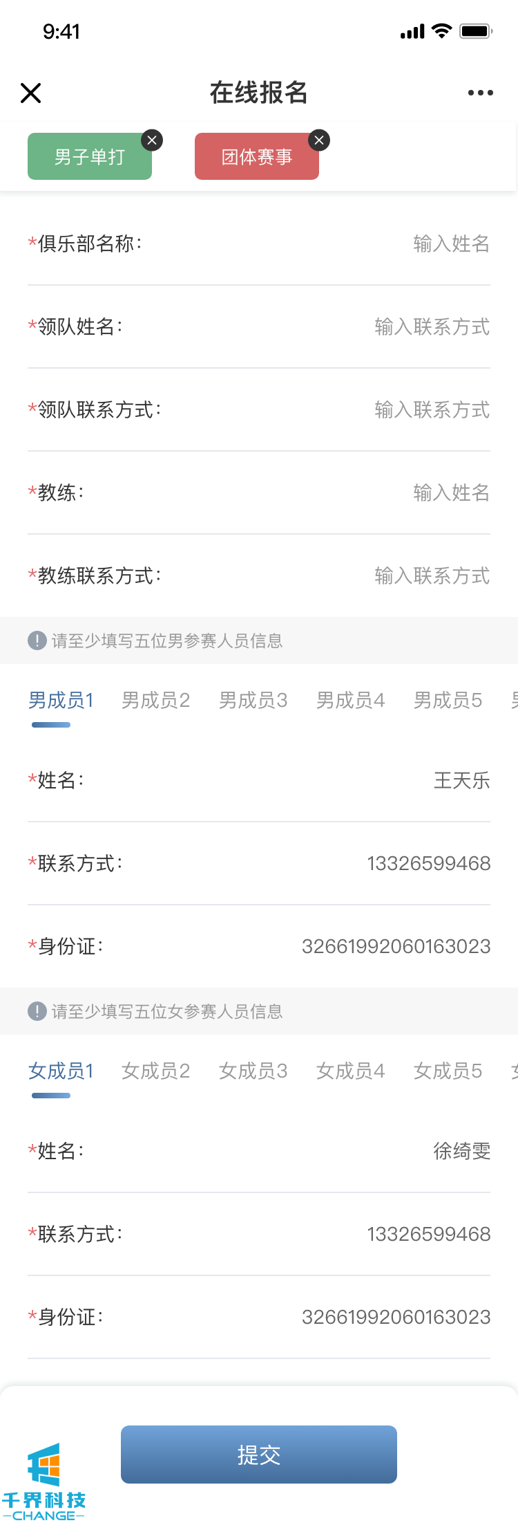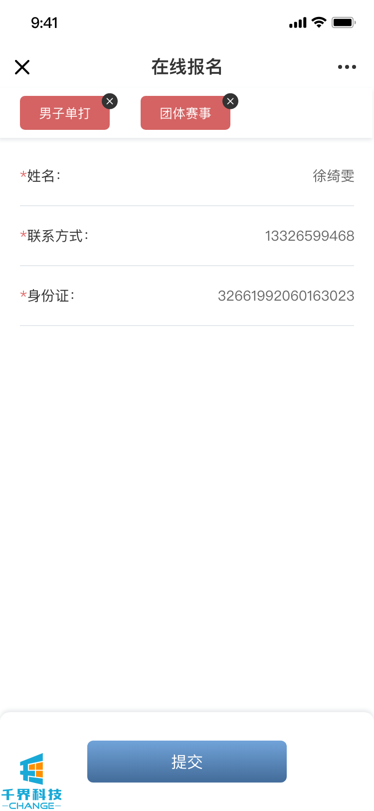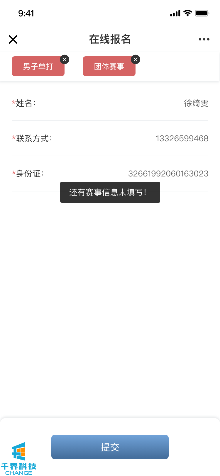 賽事報名模塊